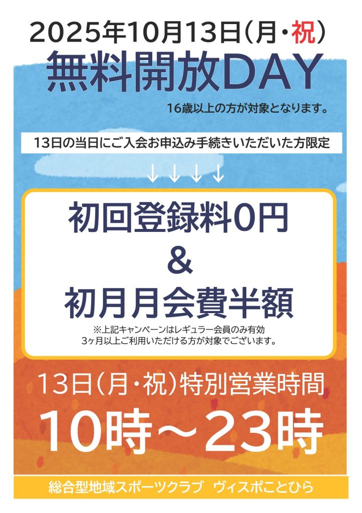 💡さらに!この日にご入会手続きをされた方限定で…✨初回登録料 0円 + 初月月会費 半額✨