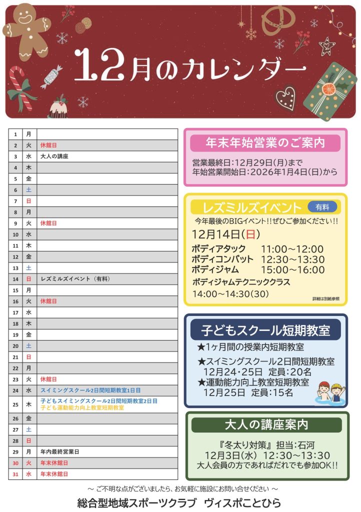 ヴィスポことひらでは、12月もイベント盛りだくさん!