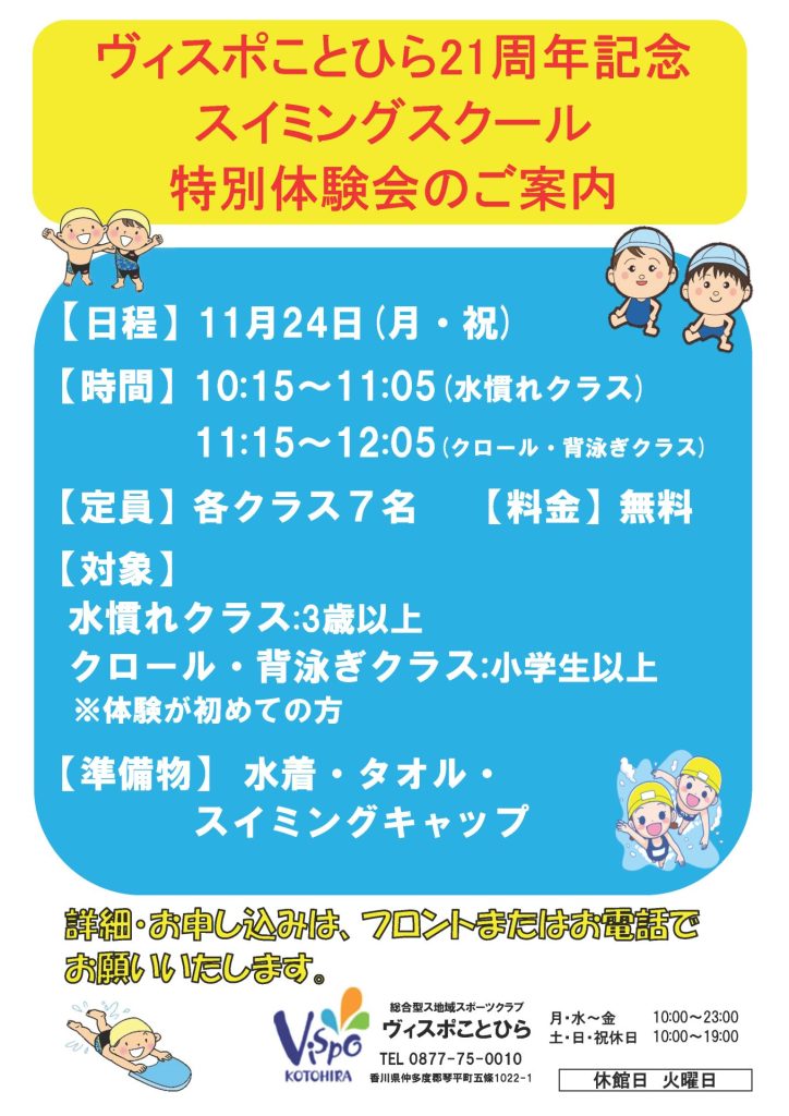 11月24日(月・祝)はプールで楽しく体験しよう🌈